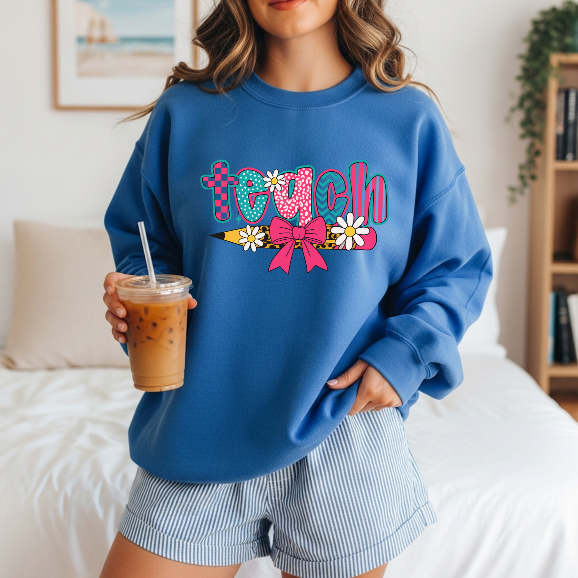 Β Add some retro flair to teacher tees with our Groovy Teach Pencil DTF transfer! Perfect for educators, back-to-school season, or classroom spirit wear. Works on cotton, polyester & blends. πβ¨
